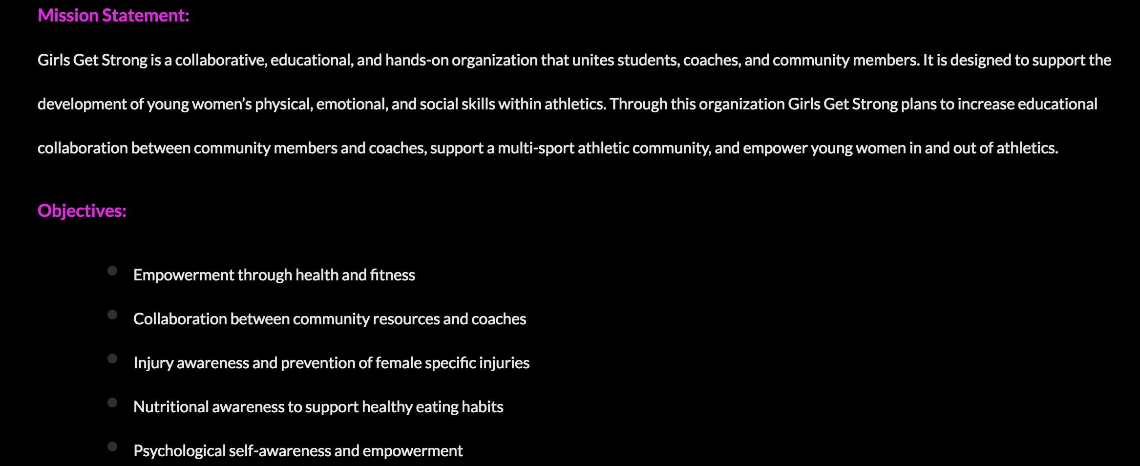 Created and managed a custom webpage for Girls Get Strong, an educational organization designed to support the development of young women in athletics.