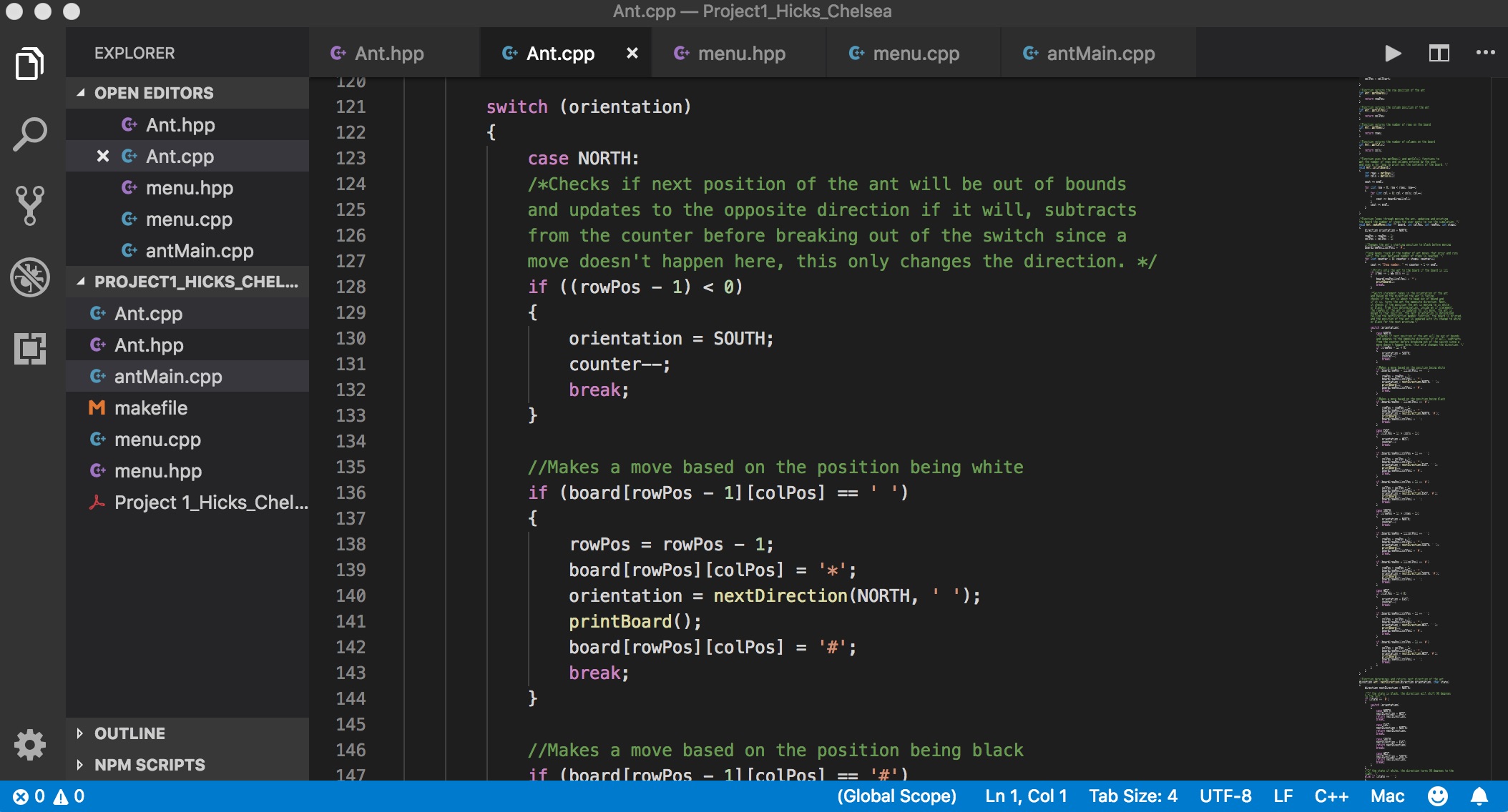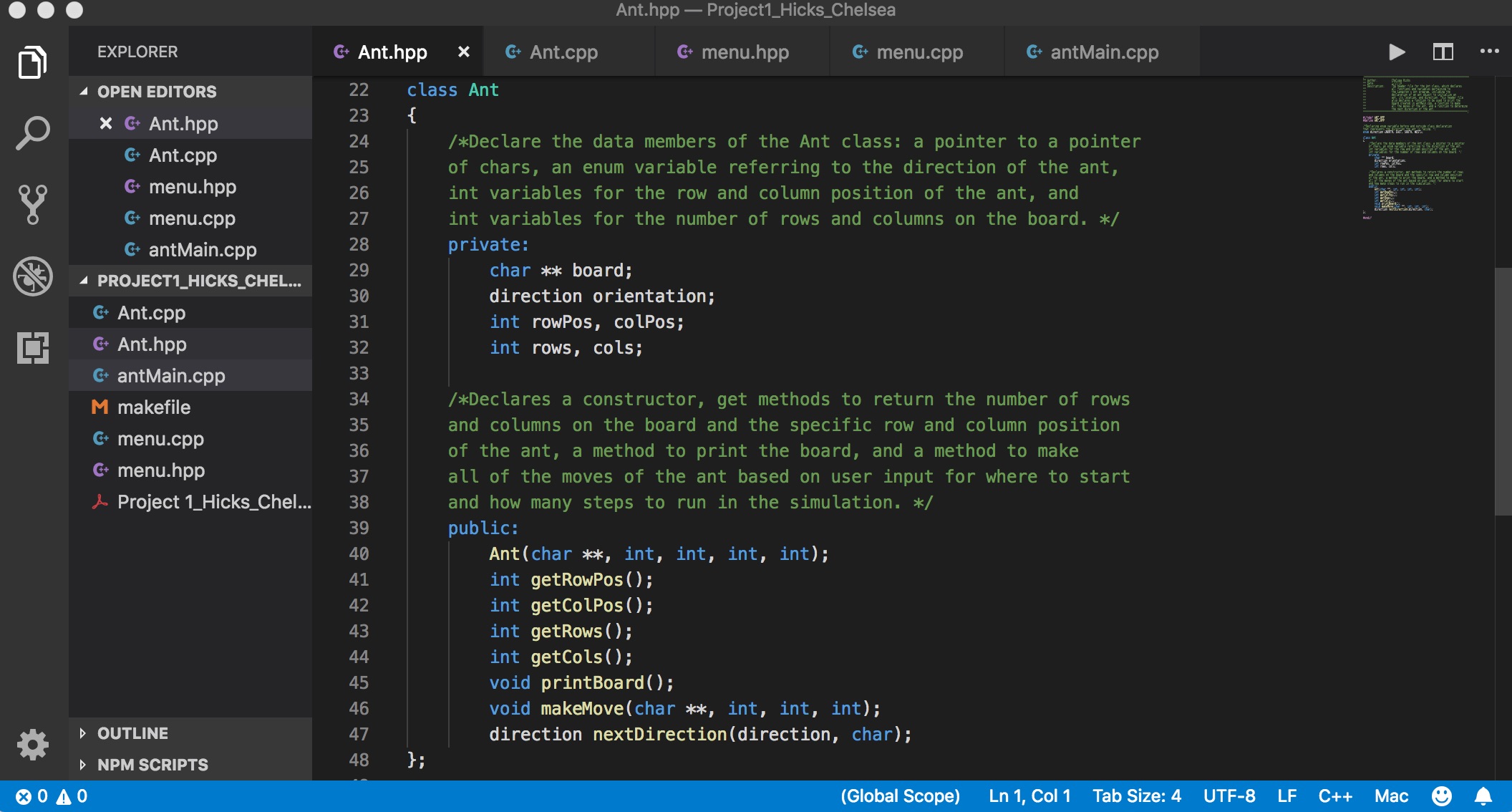 Sample of C++ header and implementation files for Langston’s Ant Simulation: