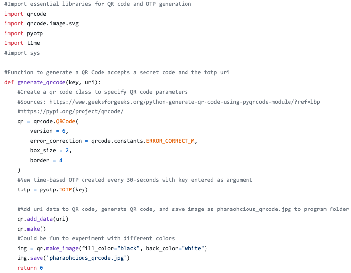 Review the program code in the totp_qr Github repository and give it a try yourself on your own machine!