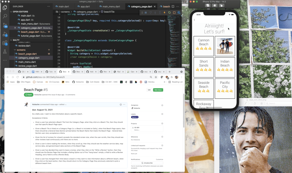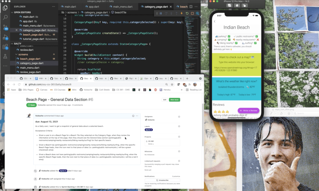 Code for the project is primarily written in Dart and utilizes the Flutter SDK for cross-platform mobile development. Initial iterations of the app make use of microservices designed by fellow Oregon State University students and provide map and weather services to Salty via REST API using a request/response style communication pipe. Salty is by no means finished and I intend to continue iterating on the application to make improvements to the code base, GUI, and include more functionalities.